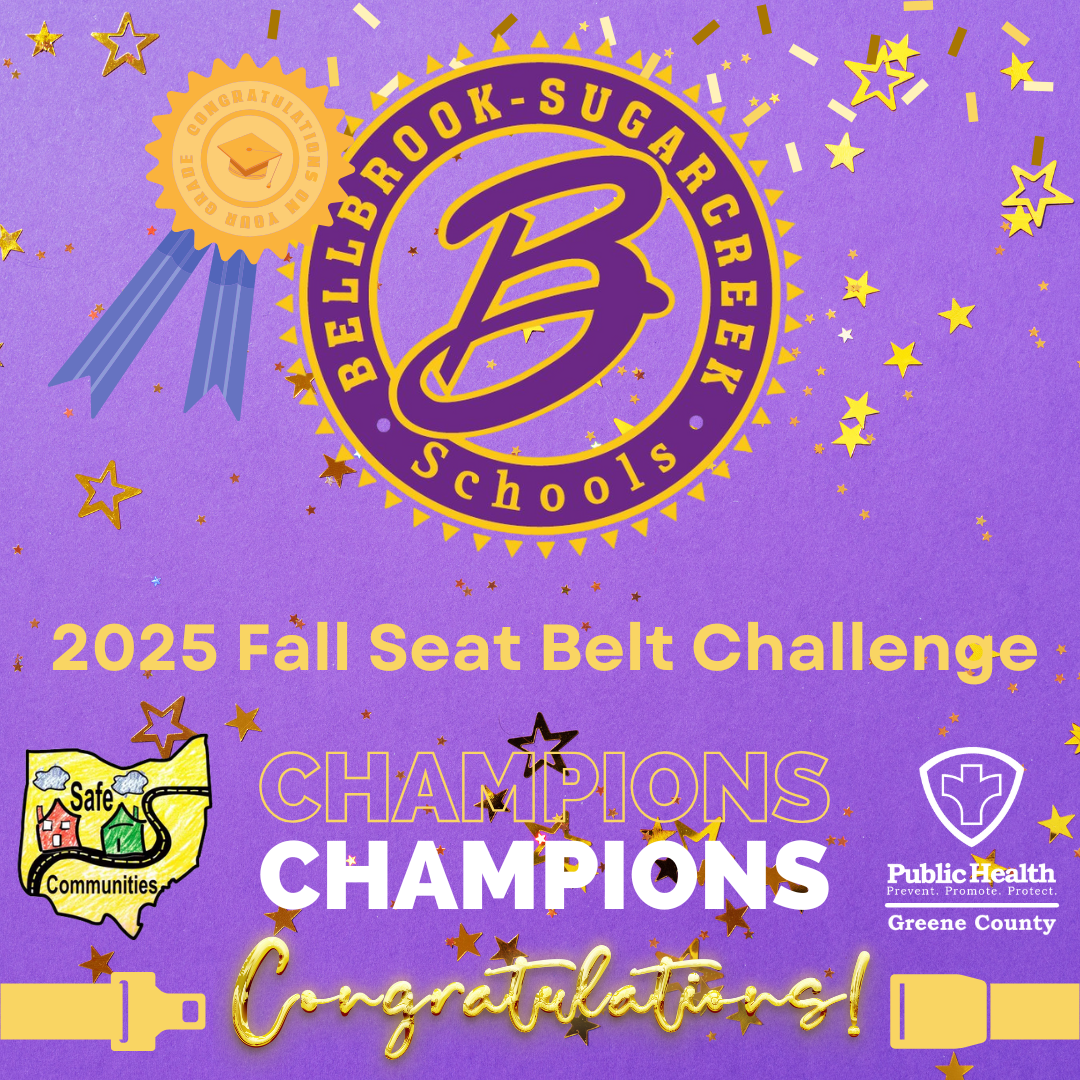 XENIA, OH — Greene County Public Health is pleased to announce that Bellbrook High School is the winner of the 2025 Fall Seat Belt Challenge! With an impressive 93% of students buckled, Bellbrook High School earned the top spot and will receive a $250 award to support safety improvements at the school.
