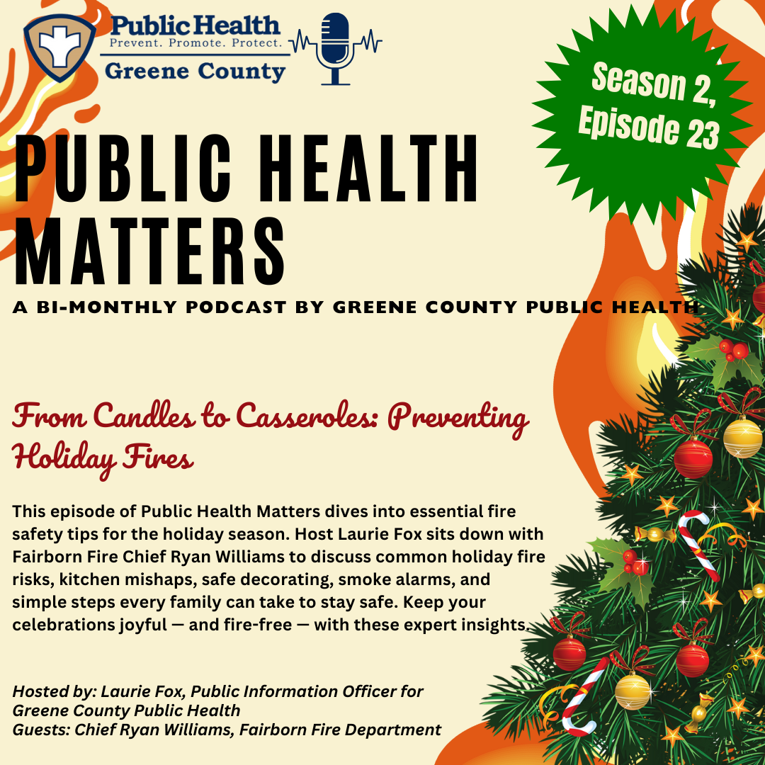 This episode of Public Health Matters dives into essential fire safety tips for the holiday season. Host Laurie Fox sits down with Fairborn Fire Chief Ryan Williams to discuss common holiday fire risks, kitchen mishaps, safe decorating, smoke alarms, and simple steps every family can take to stay safe. Keep your celebrations joyful — and fire-free — with these expert insights.