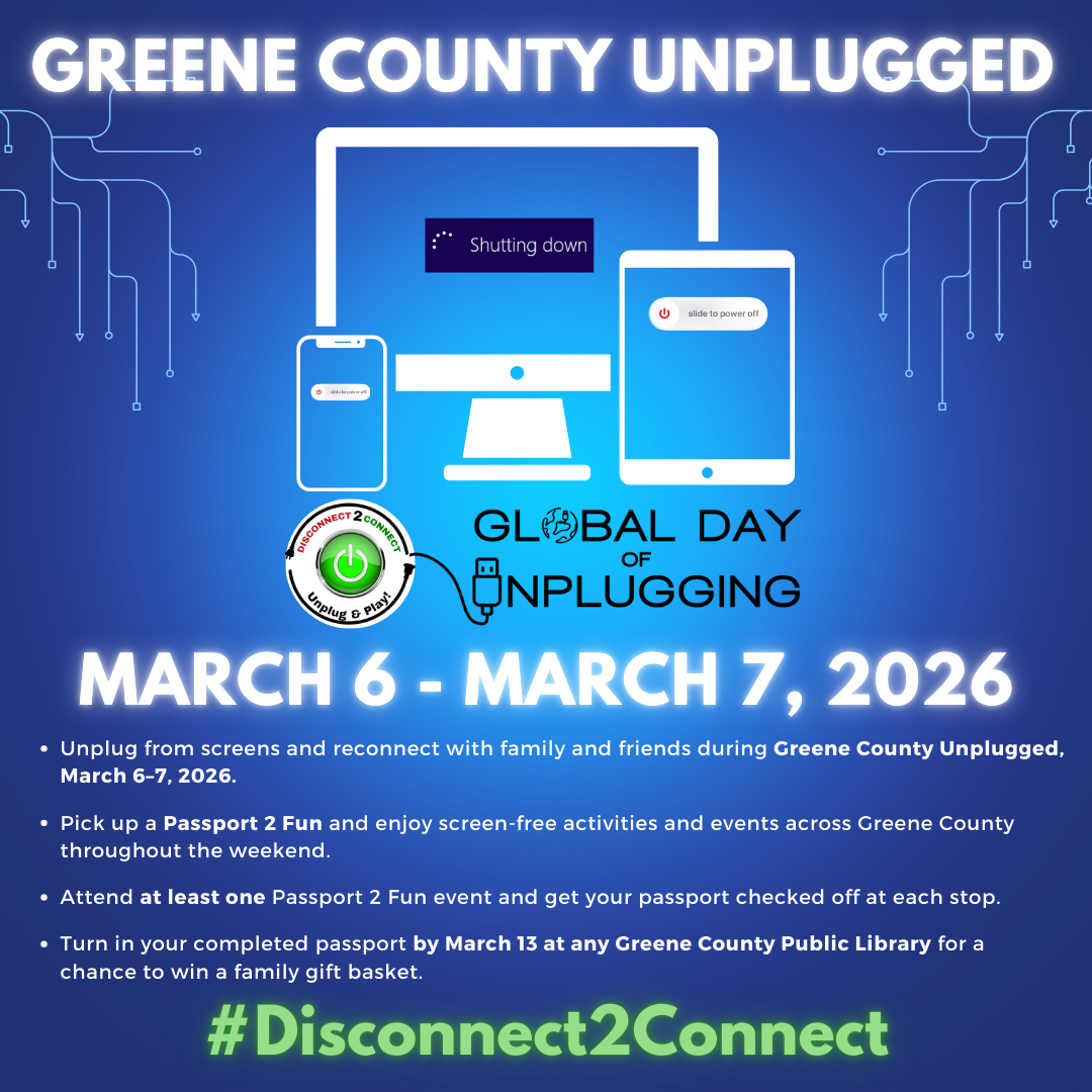Greene County families are encouraged to put down their screens and reconnect with each other during Greene County Unplugged, a countywide initiative taking place March 6–7, 2026, in celebration of the Global Day of Unplugging.