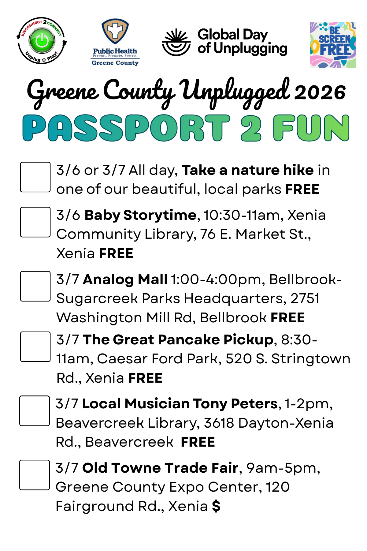 THE PASSPORT: Get your passport at any Greene County Public Library branch, at Greene County Public Health, or through Greene County Parks & Trails.