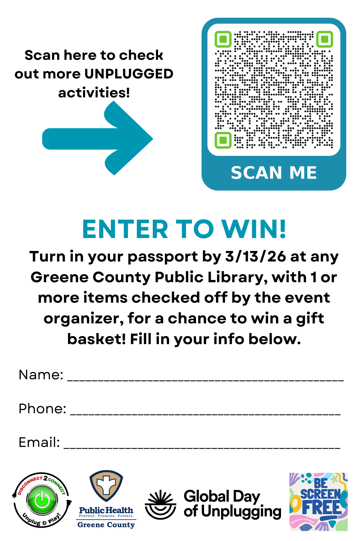 - Turn in your completed passport with your name and contact information by March 13, 2026